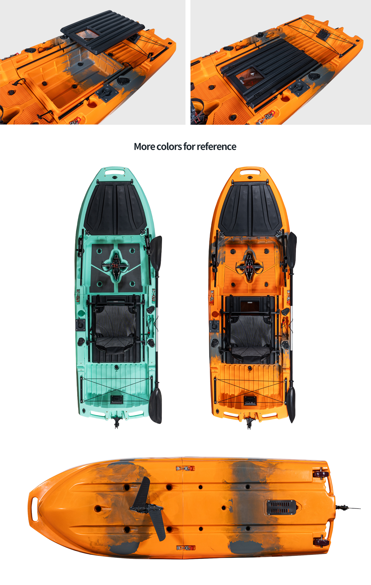 | Standard features | ● 2-Section tandem modular kayak |